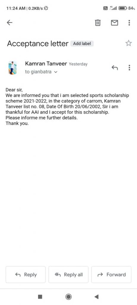 प्रकाशनार्थ कैरम खिलाड़ी मन्तसा इकबाल , कामरानतनवीर और समद अख्तर A.A.I. स्कालरशिप के लिये चयनीत ।