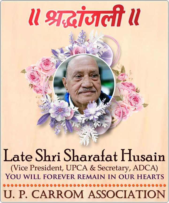 उत्तर प्रदेश कैरम एसोसिएशन के उपाध्यक्ष शराफत हुसैन के निधन पर कैरम जगत शोकाकुल ।